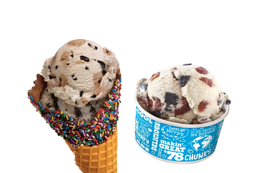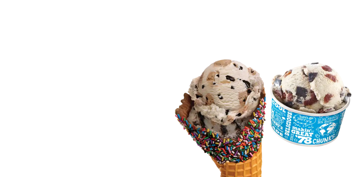 Tilbage i 1978, da Ben og Jerry for første gang serverede is i deres scoop shop i Burlington, VT, var det et sted, hvor venner hang ud, og gode vibes flød over euforiske smagsvarianter fyldt med stykker og hvirvler. I dag er vores lokalt ejede og drevne scoop shops stadig samlingssteder i lokalsamfund over hele verden, hvor du kan nyde dine yndlingssmagsvarianter, stadig fyldt med stykker og hvirvler!