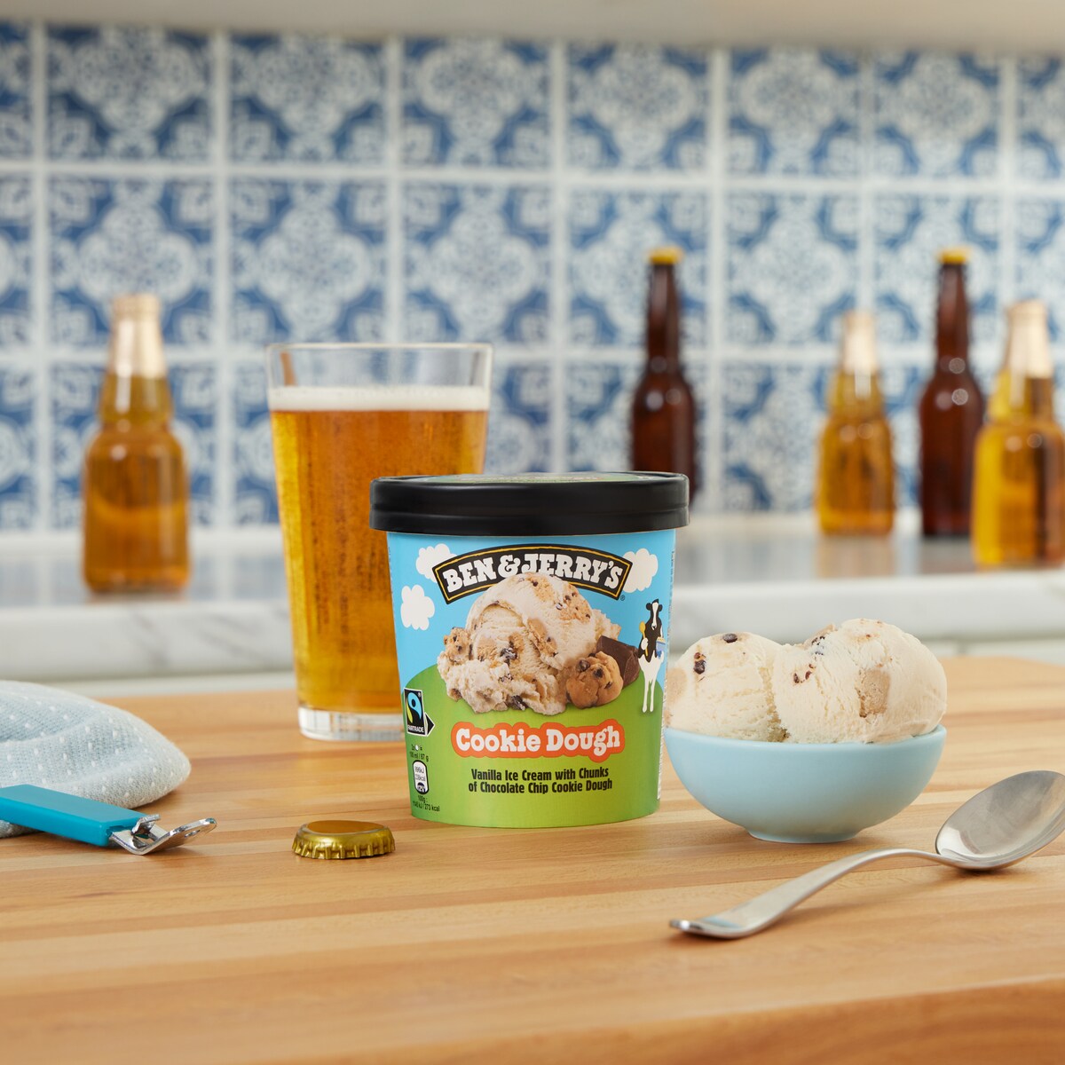 Let’s pour a cold pint! Compliment the crisp, lightly hoppy notes of your favourite lager with sweet, buttery chunks of cookie dough. Have them separately for a classic treat, or make it a pour-over if you’re feeling a little extra.